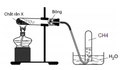 Bước 1: Cho vào ống nghiệm có nút và ống dẫn khí khoảng 4 – 5 gam hỗn hợp bột mịn gồm natri axetat và vôi tôi xút (chất rắn X) theo tỉ lệ 1: 2 về khối lượng.