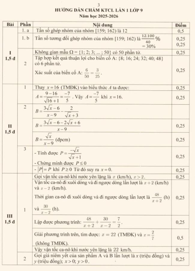 Đáp án khảo sát vào 10 lần 1 Hà Đông 2025 - 2026