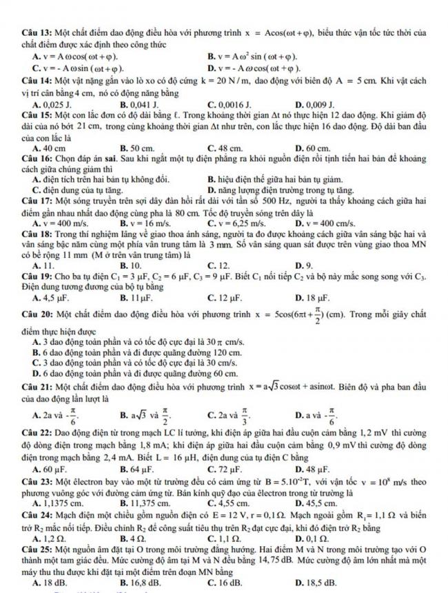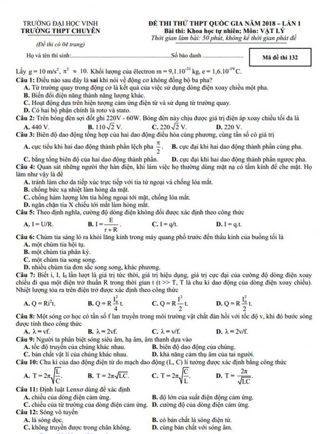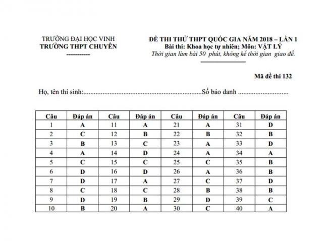 Đề thi thử THPT Quốc gia môn Lý năm 2018 trường Chuyên Vinh lần 1Xuất bản: 18/06/2018 - Cập nhật: 19/06/2018 - Tác giả: Giangdh Tham khảo đề thi thử và đáp án môn Lý tốt nghiệp THPTQG trường Chuyên Vinh lần 1 năm 2018Mục lục nội dung1. Đề thi2. Đáp ánĐề thi Đáp án Đề thi thử môn Lý thptqg năm 2018 trường Chuyên VinhBạn còn vấn đề gì băn khoăn?Vui lòng cung cấp thêm thông tin để chúng tôi giúp bạn HủyGửi