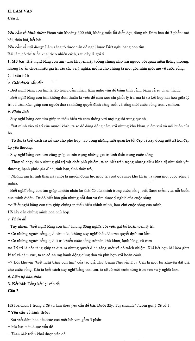 Trên đây là toàn bộ nội dung của đáp án đề thi vào 10 môn văn thành phố Hồ Chí Minh năm học 2024 - 2025 và các năm trước.