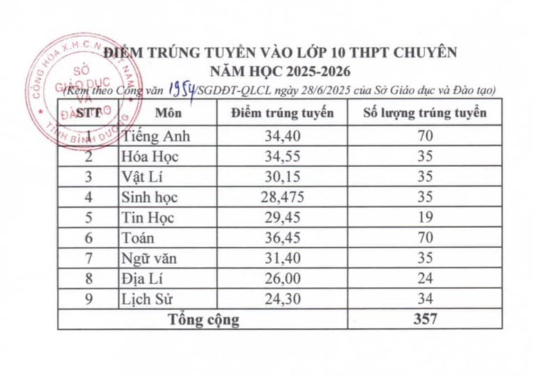 Điểm chuẩn vào chuyên Bình Dương