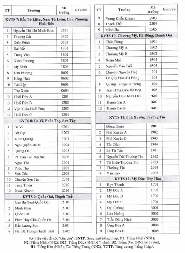 Danh mục mã số các trường trung học phổ thông công lập của Hà Nội năm học 2025-2026 dành cho các em và phụ huynh học sinh tham khảo để tránh nhầm lẫn.